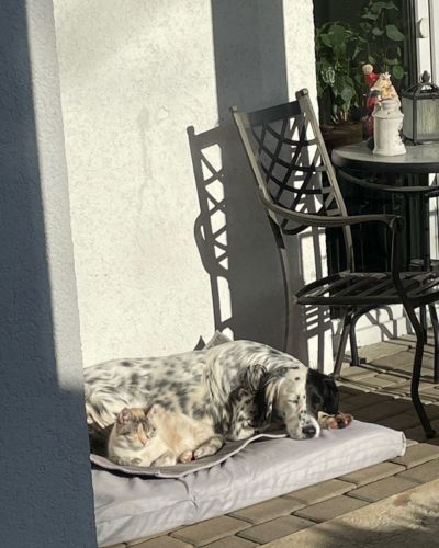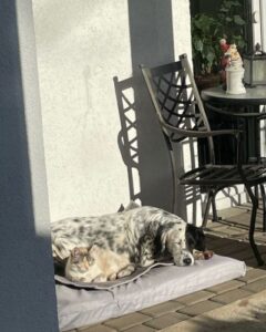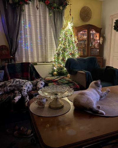 Ģimenē dzīvo arī divi kaķi, pie kuriem Dženija maigi un uzmanīgi ieguva uzticību, un tagad viņi ir labākie draugi.))