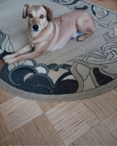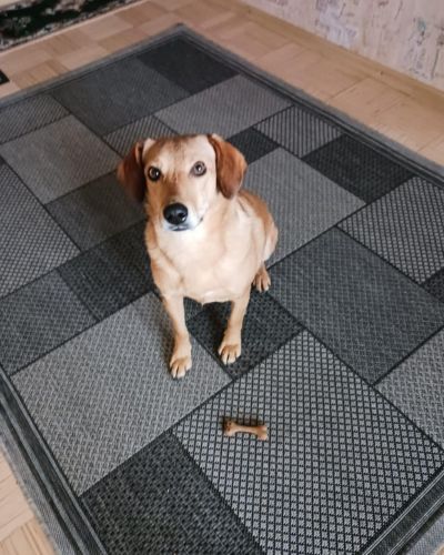 Pieradināta pie pastaigām ārā. Mājās neko nebojā un negrauž. Mierīgi var palikt mājās viena.