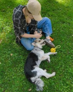 Ir jau pieradis pie mums un vēlas lai visu dienu viņu mīļo. Mīl mums baļķus sēdēt un prasīties lai glauda. Ir arī tuvos draugos ar mūsu istabas kaķi