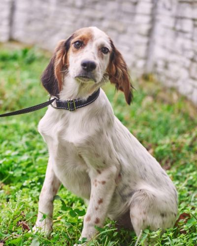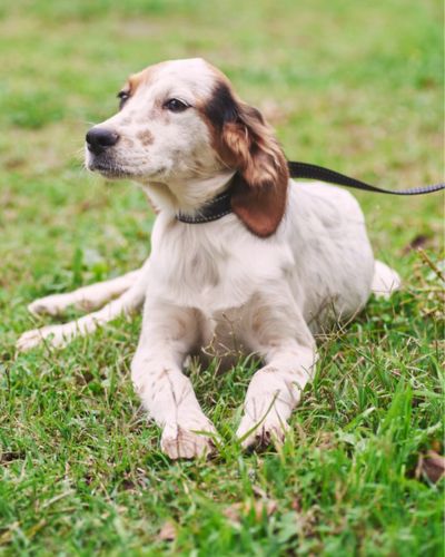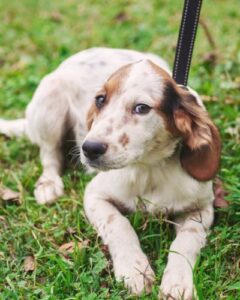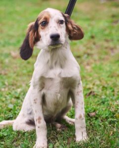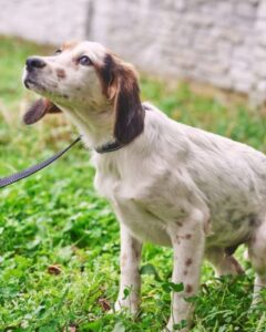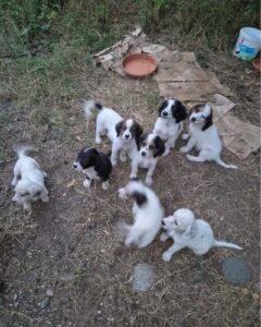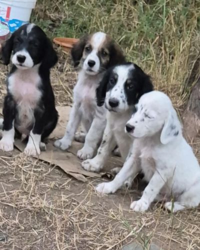 Мама щенков — метис сеттера была выброшена на улицу нестерилизованной, как итог, она забеременела и родила 8 малышей.