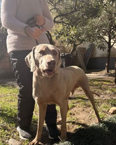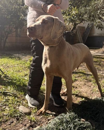 Рамсес — мощный, но очень грациозный красавец породы Веймаранер. Несмотря на внушительные размеры это очень ласковый пес.