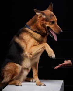 Он — крупный, активный и послушный парень. Он отлично знает машину и команды: «Сидеть», «Дай лапу», «Лежать». С другими животными Риф дружелюбен и очень любопытен.