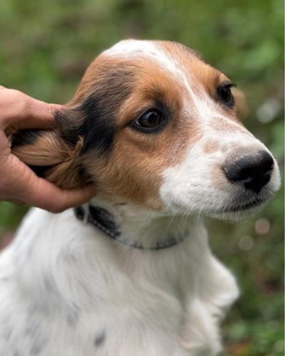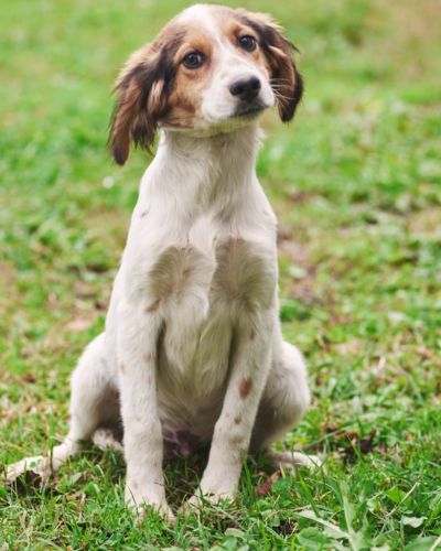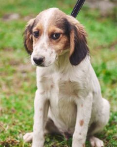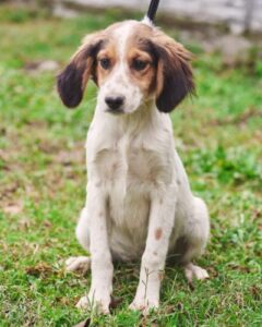 Мама щенков — метис сеттера была выброшена на улицу нестерилизованной, как итог, она забеременела и родила 8 малышей.
